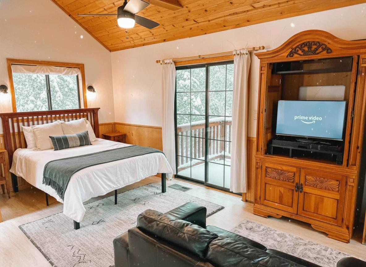 It’s the upper-level unit of a duplex-style cabin, with a separate private unit directly below. We kindly ask guests to be mindful of noise, especially at night, to ensure a peaceful stay for everyone.